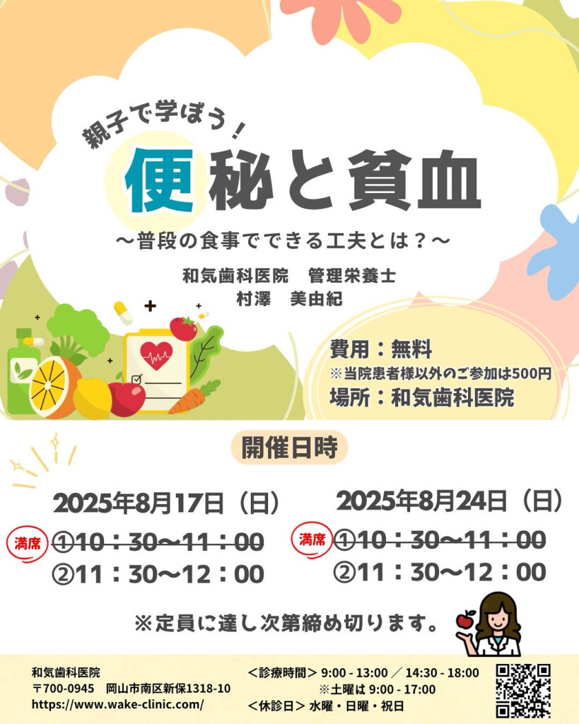 今回は「便秘と貧血」と題して子どもにも起こりやすい便秘と貧血について、なぜ起こるのか・どう予防するのかをお伝えいたします。