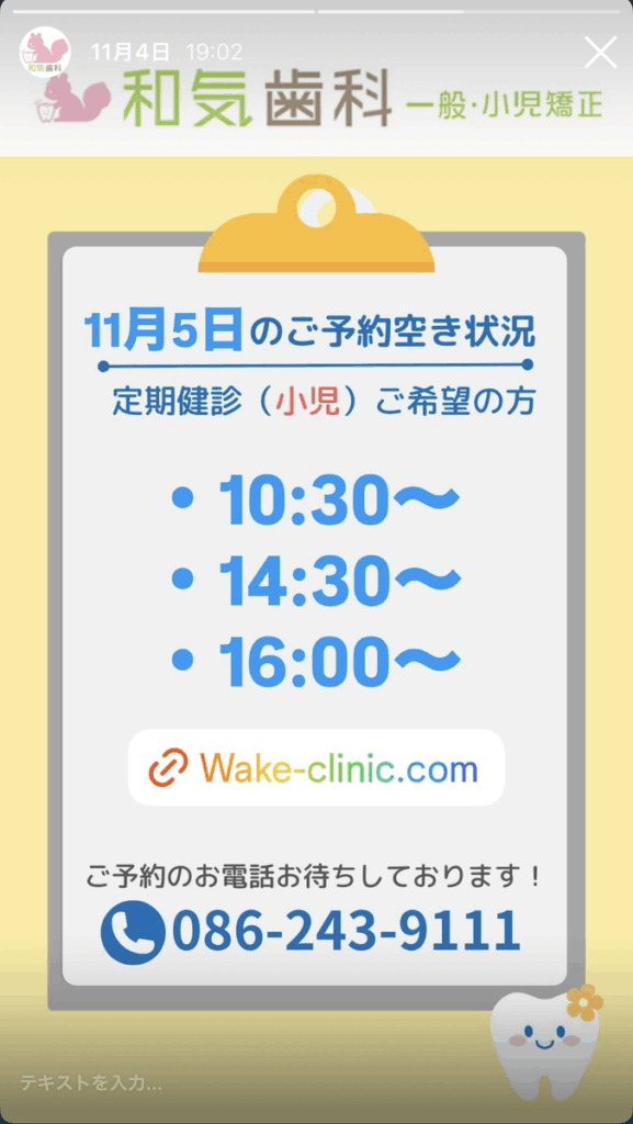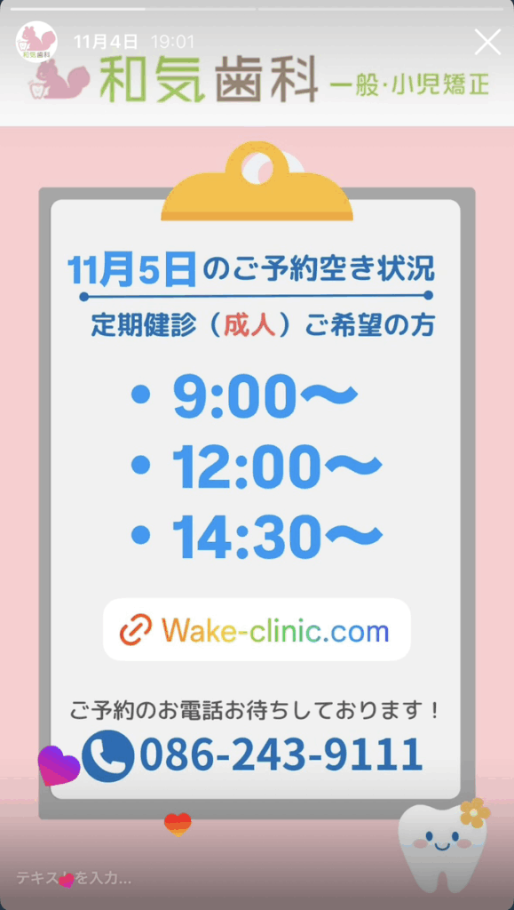 診療空き状況をインスタグラムのストーリーズで配信中
