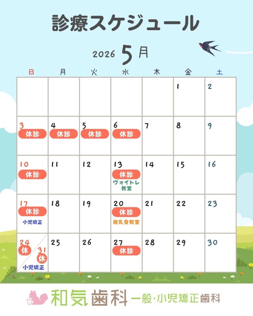 5月の診療案内およびイベントカレンダーとなります😊✨